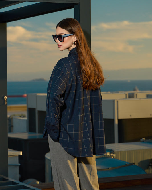 İndirimLacivert Ekose Gömlek